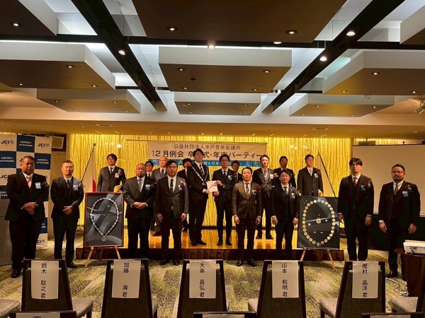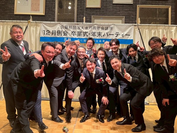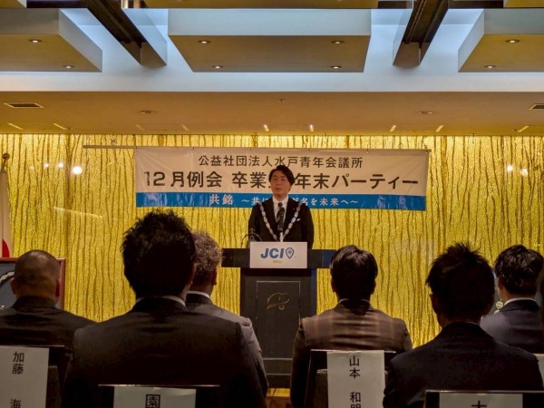 【12月例会 卒業例会 開催報告】12月5日(金)に12月例会 卒業例会を開催しました。2025年度、加治理事⾧が掲げた「磨穿鉄硯」のスローガンをもとに進めてまいりました運動・活動を先輩諸兄姉へ報告させていただき、水戸青年会議所でご活躍されてきた18名の卒業生へ感謝を伝えるとともに卒業生自身の飛躍を誓っていただきました。また、新入会メンバーも積極的に事業構築に携わり、大きく成⾧することができました。改めまして、ご参加をいただきました皆様、誠にありがとうございました。